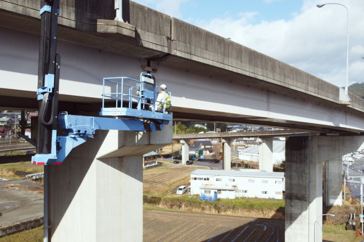 専門の技術者が、ひび割れや剥離、鋼材の腐食、支承の損傷など、劣化のサインをすみずみまでチェック。