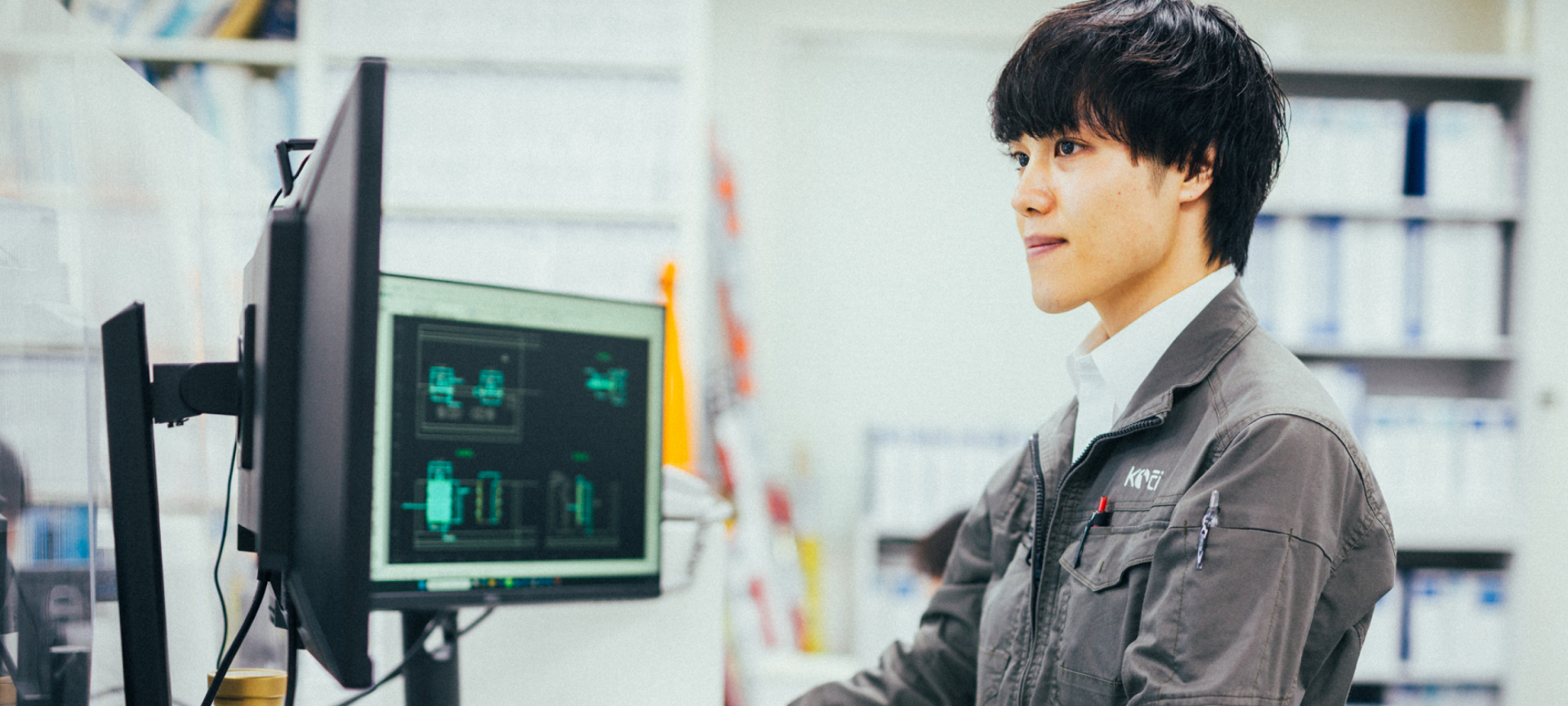 島根大学大学院で水質浄化を研究。地元で環境に関わる仕事ができることを軸に入社。事業計画業務一筋で地域づくりに貢献。現在は部長として、チームの調整役を担う。