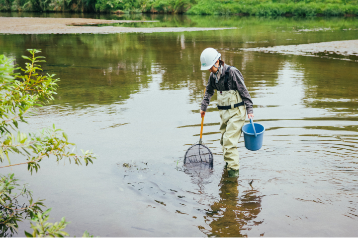 河川に生息する魚類、底生生物、水生植物などを調査し、河川環境の「現況」を正確に把握します。