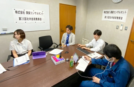 在宅勤務社員も気軽に参加できるようWEB開催とし、下記業務の報告を行いました。
