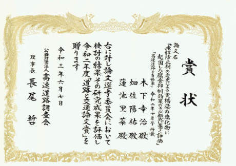 道路と交通論文賞を受賞しました