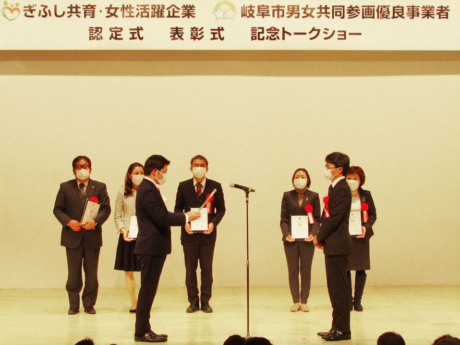 岐阜市では、男性の育児参画により夫婦で共に子育てを行う「共育」や、女性の活躍を促す取り組みを積極的に行っている企業を「ぎふし共育・女性活躍企業」として認定を行っており、この度弊社が認定を受けました。