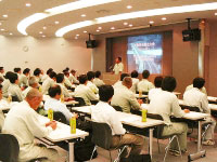 「基本方針」と「年度方針」が宣言されました。労働安全についての実施例と規定の運用についての話があり、